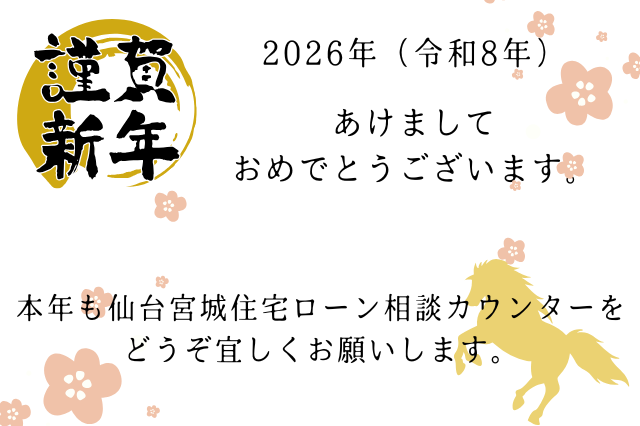 新年あけましておめでとうございます。 住宅ローンの相談を通して、本年も皆様にとって良い年となりますように尽力いたします。 本年も仙台宮城住宅ローン相談カウンターをどうぞ宜しくお願いします。 宮城県で昭和60年創業 仙台宮